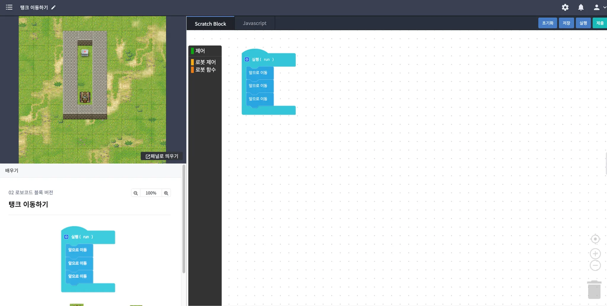 로봇의 움직임을 기반으로 한 미션들로 구성되어 있습니다.